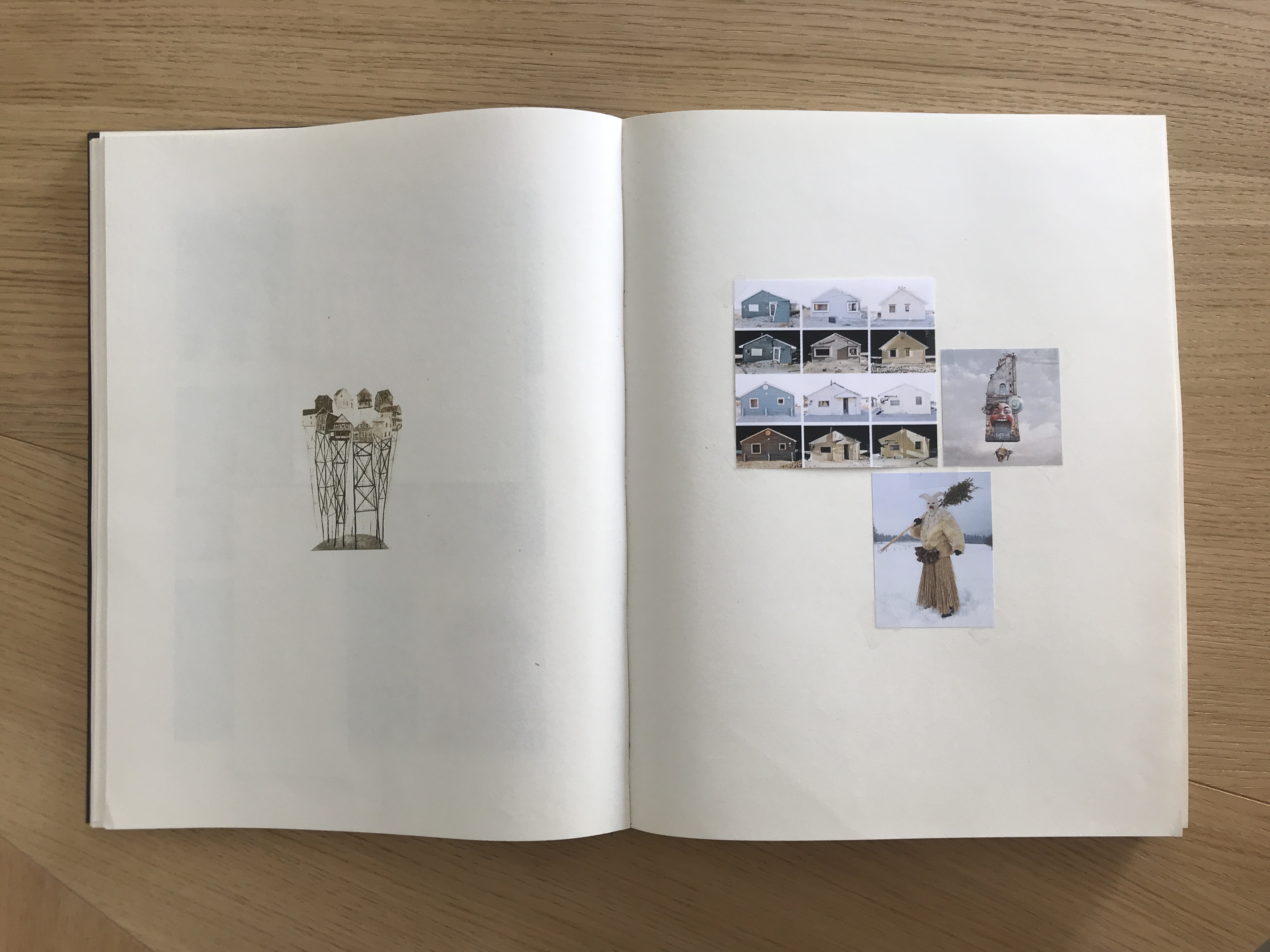 Técnica: collage manual, encuadernación en acordeón, impresión en inyección de tinta y transferencia manual.